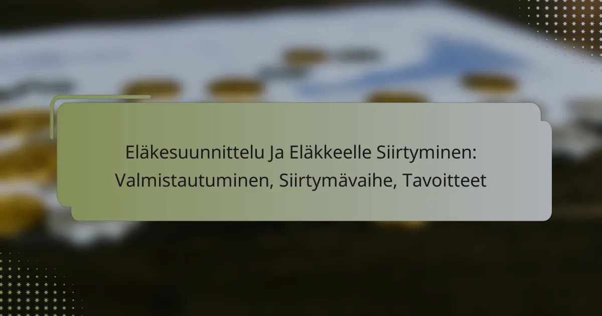 Siirtyminen eläkeikään on merkittävä elämänvaihe, joka vaatii huolellista suunnittelua ja valmistautumista. Tämä prosessi sisältää käytännön toimenpiteitä, uuden päivärutiinin luomista sekä sosiaalisten verkostojen huomioimista. On tärkeää miettiä myös, miten eläkeläisen identiteetti kehittyy ja mitä mahdollisuuksia se tuo mukanaan.
