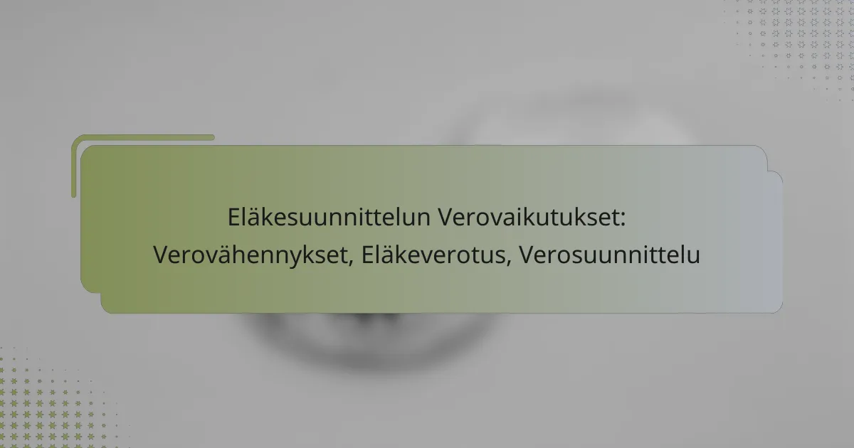 Eläkesuunnittelun verovaikutukset ovat keskeisiä tekijöitä taloudellisessa valmistautumisessa eläkeikään. Verovähennykset voivat merkittävästi alentaa eläkesäästöjen kustannuksia, kun taas eläkeverotus vaikuttaa suoraan eläkeläisten nettotuloihin. Ymmärtämällä näitä perusperiaatteita ja hyödyntämällä tehokkaita verosuunnittelustrategioita, voidaan parantaa taloudellista turvallisuutta eläkevuosina.
