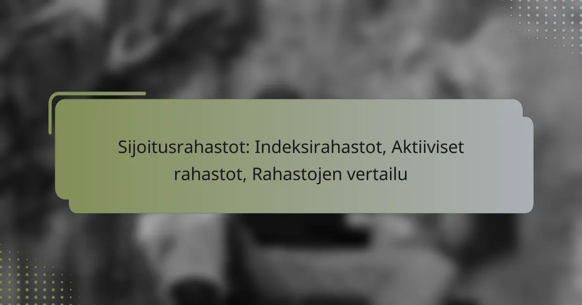 Sijoitusrahastot jakautuvat pääasiassa kahteen tyyppiin: indeksirahastoihin ja aktiivisiin rahastoihin. Indeksirahastot seuraavat markkinaindeksiä ja tarjoavat alhaiset kustannukset, kun taas aktiiviset rahastot pyrkivät ylittämään markkinoiden tuotto-odotukset joustavilla strategioilla, mutta ne voivat sisältää korkeampia hallintokuluja ja riskejä. Sijoittajien on tärkeää vertailla näitä vaihtoehtoja huolellisesti ennen sijoituspäätösten tekemistä.