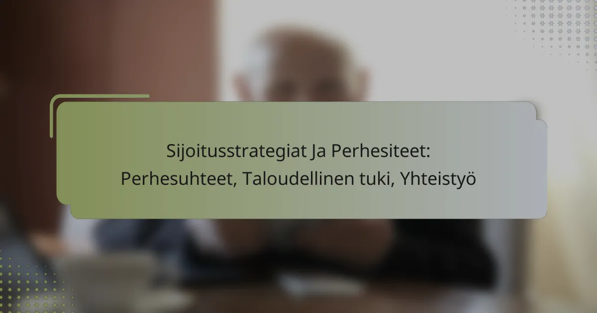 Perhesuhteet ja sijoitusstrategiat ovat tiiviisti sidoksissa toisiinsa, sillä perhe voi tarjota taloudellista tukea ja yhteistyömahdollisuuksia. Hyvät suhteet luovat luottamusta ja avoimuutta, mikä on tärkeää yhteisten sijoitustavoitteiden saavuttamisessa. Samalla taloudellinen tuki voi vahvistaa suhteita, mutta se voi myös aiheuttaa jännitteitä, riippuen perheen dynamiikasta ja tuen muodosta.