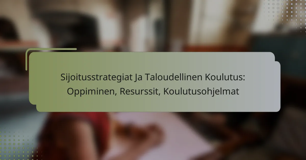 Sijoitusstrategiat, kuten arvosijoittaminen ja indeksisijoittaminen, tarjoavat erilaisia mahdollisuuksia ja riskejä sijoittajille. Taloudellinen koulutus on ratkaiseva tekijä, joka parantaa sijoituspäätöksiä ja auttaa varallisuuden kasvattamisessa. Oppimisresurssit, kuten verkkokurssit ja talousblogit, tarjoavat arvokkaita työkaluja sijoitusstrategioiden kehittämiseen ja taloudellisen ymmärryksen syventämiseen.